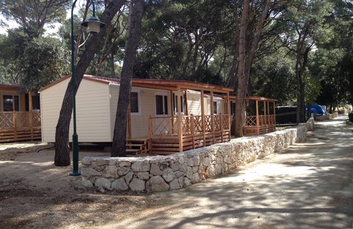 Camping Soline is an attractive and green holiday park. It offers two types of identical comfortable chalets, furnished for six people. The only difference is the location of the chalets. Chalet HR-23210-01 is further the park at least 100 metres from the sea. The HR-23210-03 is closer to the sea, namely between 50 metres and 100 metres away. Both types have their own veranda with garden furniture.
