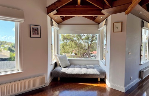 The main living area is comfortable and cozy, with large windows that bring the outside in. A spacious lounge invites you to unwind after a day of exploring, with a large flat-screen TV, day bed, separate kids play area and a selection of books and games to keep them entertained.