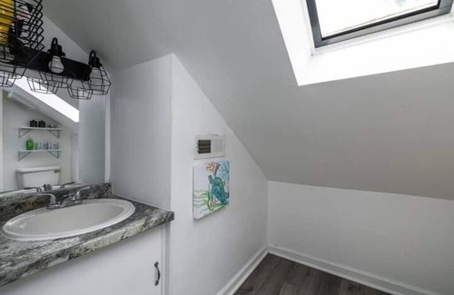 There is a staircase that has 15 steps that must be climbed to reach the apartment. A picture of the staircase is provided in this listing. Skylights in the kitchen and low ceilings in some areas gives the place a unique and cozy feel. Our location is convenient for exploring Greensboro and the surrounding cities of High Point and Winston Salem.