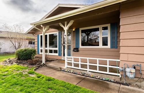 3 queen beds with comfy mattresses plus 2 queen air beds if needed. Extra wide couch can also be used for bed. Lots of parking. Fits approx 4 cars- driveway/side of house and street parking also available. Conveniently located near hospitals, shopping, restaurants, gyms, schools, & bus lines. Approx. 5 minute drive to Albany hospital, 20 min drive to OSU or Corvallis Hospital, and 30 min drive to Salem. There is 1 window A/C unit in kitchen/living area. If you are looking for a fancy place, this is not it! But looking for comfy mattresses to sleep on, a homey pet welcoming place, this is the place!