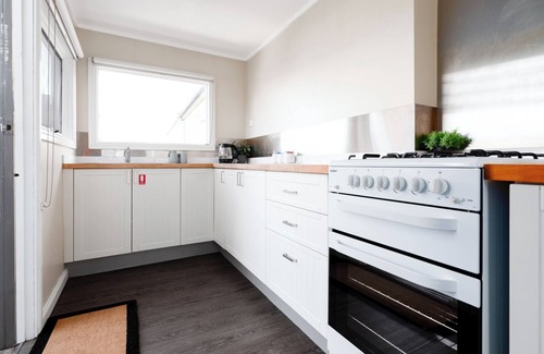 As you arrive at this delightful urban cottage, its sunlit white weatherboards invite you to step inside. Upon entering, you'll be greeted by a central hallway, with 2 bedrooms on the left and right, each furnished with a comfortable queen bed.
