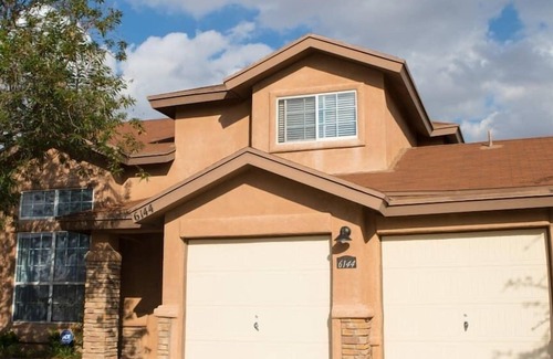 A great spot for a work week or family get together. Nestled in a very nice, quiet neighborhood on the west side of El Paso, with great shopping and dining nearby. The master bedroom with ensuite bath and shower, is up the stairs from the open kitchen and family room. The lower bedrooms feature a queen bed in one, with two twin beds in the other. They have a shared full bath. Central air conditioning was recently added for your year round comfort!