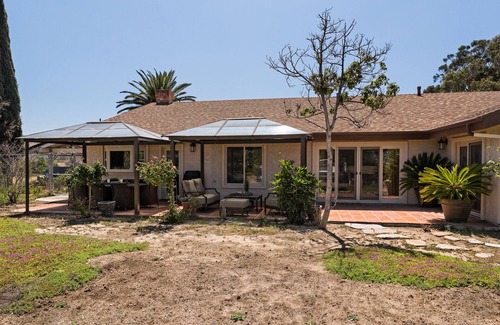 Overlooking orchards in serene Somis, CA, you will find yourself getting away from it all, without leaving any of the comforts of home behind. 45 minutes from Los Angeles, 1 hour from Santa Barbara, and 25 minutes to the world famous beaches of Malibu, you will love having this as your home base for any Southern California adventure. It's location on a secluded 5 acre property make it perfect for group retreats, yoga, BBQs, wedding receptions, and more. Let us be your guide to the most magical part of California!