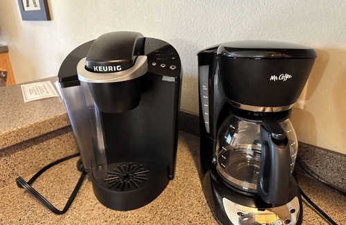 All the comforts of home are yours, including balcony, gas fireplace, 50" Smart TV with SonicNet fiber internet service, full kitchen, master bath with glass walk-in shower and separate dressing area with sink. Adjacent Studio Unit 216 provides a separate, lockable bedroom with king and queen beds, coffee/microwave bar, and bathroom with tub/shower combo. This Unit also includes use of our single stall garage, located across the hall and on the same level of Unit 206.