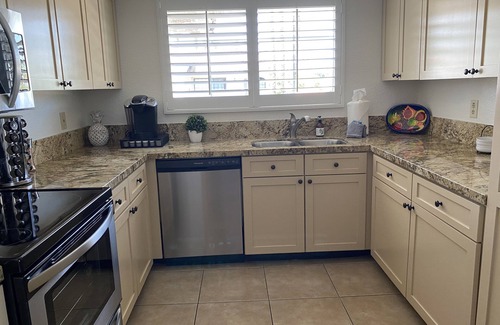 Modern, bright, fully-equipped kitchen. Fast WiFi; Smart TVs with cable, HBO Max, Prime Video, and Netflix; tennis; pools; mountain views.