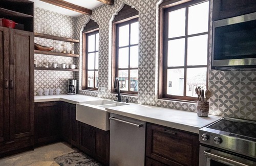 This vacation home features outdoor terraces in both bedrooms and the living room which brings fresh air and the charming sounds of small, neighborhood streets into the home. They serve as a constant reminder of all of the wonder that lies just outside and connects the interior of the home in a way that naturally encourages guests to spend time together.