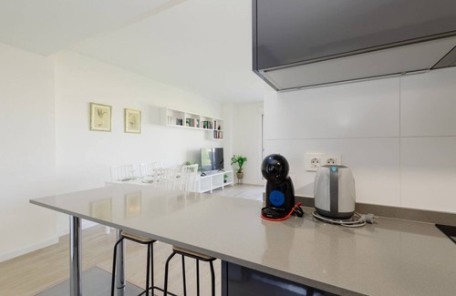 The living room is decorated in a classic and minimalist style, with a three-seater sofa, a futon, and a smart TV with the possibility of putting on your payment platforms such as Prime, Netflix or Movistar among others. In the dining area there is a wooden table with space for 4 people, perfect for breakfasts with family, friends or couples.