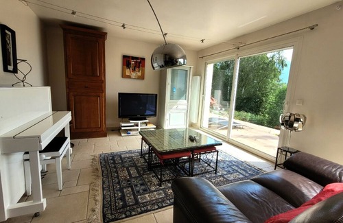 Contemporary architecture by Lourdes, view of the Pyrenees, garden, spa, hammam is located in Buzy. Contemporary architecture by Lourdes, view of the Pyrenees, garden, spa, hammam provides accommodation, featuring TV, Sports/Activities, Entertainment, among other amenities. This Villa features TV, Sports/Activities, Entertainment, to make your stay a comfortable one.
