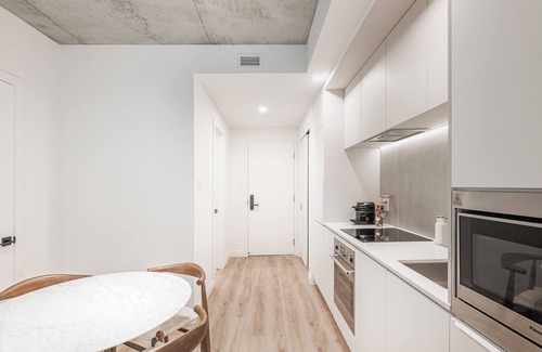 Le Mont Apartments offers a stylish one-bedroom apartment in Montreal's lively Ville-Marie district. The apartment features an open-concept kitchen, modern appliances, a spacious living area, and a private balcony with city views. Residents enjoy top-tier amenities, including a rooftop terrace with a hot tub and a communal lounge.