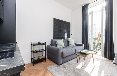 Beautiful 18m2 studio completely renovated, very bright, located on the 2nd floor with lift, 300m from Avenue Jean Médecin!The accommodation has a pleasant balcony in full sun with a nice view.Upon entering the apartment you will find a small dressing room, followed by a bathroom with shower, vanity unit and toilet.The stay consists of:- an equipped corner kitchen (fridge, hob, integrated extractor, microwave, washing machine, Nespresso coffee machine)- a small lounge area with a convertible sofa (quick opening system, 140cm wide), and televisionThe apartment is air-conditioned and has double glazing.Close to all shops and transport:- supermarket at the bottom of the building, bakery and right next to Avenue Jean Médecin for your shopping trips!- tram line 1 (serving the Gare de Nice Ville): stop Jean Médecin 5min walk- tram line 2 (directly serving the airport): Durandy stop 6min walkYou will be ideally located to explore the whole city!- Nice Ville station (to also go to Cannes, Villefranche-sur-Mer, Monaco etc.): 10min on foot (800m)- Place Masséna and pedestrian zone: 10 min on foot (800m)- Place Garibaldi: 10min walk (800m)- Old Nice: 10min walk (800m)- Promenade des Anglais and beaches: 14min walk (1km)- The Port: 12min walk (1km)Bed and bath linen is provided by a professional service provider, welcome products for your arrival (small soaps, coffee), as well as a free Wi-Fi internet connection.The products at your disposal are welcome products, to allow you to arrive in complete peace of mind. We cannot guarantee that they are sufficient for the duration of your stay. It depends on your personal consumption.