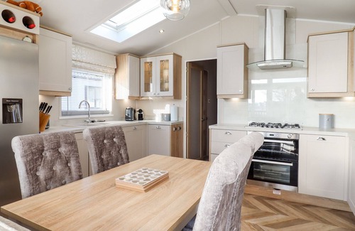 Amenities: Gas central heating. Gas oven, gas hob, microwave, American fridge/freezer and dishwasher. Smart TV and WiFi. Fuel and power inc. in rent. Bed linen and towels inc. in rent. Off-road parking for 2 cars. Wrap-around, gated decking with furniture. One small well-behaved dog welcome. Sorry, no smoking. On-site shop and pub 0.1 miles. Note: There are four steps up to the lodge, please take care. Note: Guests have access to on-site facilities including outdoor pool, indoor pool, adventure playground, clubhouse, restaurant, bar and gaming and relaxation setting