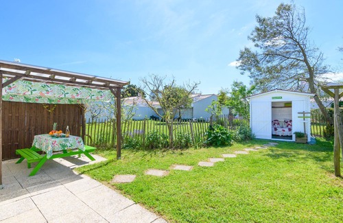 Terraced house. 600 m from the centre of Le Vieil, 3 km from the centre of Noirmoutier-en-L'Ile, in the residential district, 250 m from the sea, 250 m from the beach. For shared use: property (fenced) with lawn and flowers, beautiful garden to relax. Barbecue, children's playground (swing). Private: garden 100 m2 (fenced) with lawn. Arbour, terrace, garden furniture. In the house: storage room for bicycles. Parking on the premises. Supermarket 600 m, bus stop "Centre de Noirmoutier" 3 km, sandy beach "de la Madeleine" 250 m. Sports harbour 4 km, sailing school 200 m.