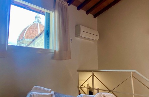 This intimate and discreet studio apartment is located on the top floor of a building in the historic center, a stone's throw from the main tourist attractions. It consists of a living area and a sleeping area separated by a mezzanine. Equipped with a private bathroom but no of cuisine, the bright environment guarantees a privileged view of the Duomo and Palazzo Vecchio while the romantic and welcoming atmosphere is perfect for a romantic getaway. It is an excellent starting point for a short stay, suitable for resting and admiring the Dome at any time of day! You will find everything you need for a good awakening: a kettle, a microwave and a Nespresso coffee machine. The apartment is located in a restricted traffic area so it is advisable, if you add it back by car, to book parking in a local garage. The building does not have a lift, therefore it is not accessible for people with reduced mobility.