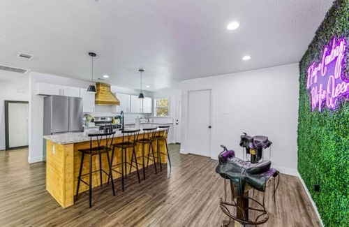 Howdy! Welcome to the Fort Worth Stockyards very own Cosmic Cowgirl! The perfect place to kick off your boots after a night on the town! Bachelorette, Birthdays and getaway trips welcome! Enjoy the large fully stocked kitchen with a built in wine fridge and everything you need to feed a crowd. A quick 3 min drive or a $7 Uber to the Stockyards. 12 minutes from Downtown Fort Worth!