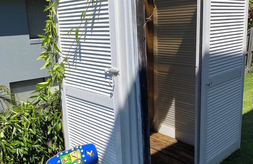 Sink. TV and Kitchenette with a microwave, kettle, toaster, fridge, cookware, etc. Separate entrance , free parking, private toilet and sink and covered outdoor hot water shower.