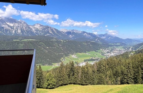 Modern, comfortable 3-family house "Alpenjuwel", 1'132 m a.s.l built in 2016, surrounded by trees and meadows. In the district of Rohrmoos 6 km from the centre of Schladming, 3 km from the centre of Rohrmoos, in a secluded, elevated position on top of a hill, 1 km from the skiing area, in the countryside. For shared use: large garden 1'300 m2 (not fenced) with lawn. In the house: sauna (extra). Storage room for bicycles, storage room for skis, ski boot dryer. Bread roll service. 6 km long motor access to the grounds (mountain road). In Winter: please take snow chains. Shop 3 km, supermarket 6 km, restaurant 2.5 km, bus stop 5.5 km, railway station "Schladming" 6 km, outdoor swimming pool 6.5 km, indoor swimming pool 6.5 km, bathing lake "Pichl" 12 km. Golf course (18 hole) 11 km, mountain railway 1 km, ski lift 1 km, slopes 1 km, ski bus stop 300 m. Well-known ski regions can easily be reached: Planai 6 km. Please note: the owner lives in the same residence. Panorama outdoor sauna for a fee (EURO 20 / /hour).