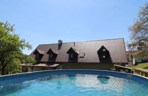 Comfortable house detached. On the outskirts, 2.3 km from the centre of Černý Důl, in a quiet, sunny position, 1.5 km from the lake, 3 km from the skiing area. Private: property, swimming pool round (seasonal availability: 01.Jun. - 30.Sep.). Terrace, garden furniture, barbecue, fireplace, parking (for 2 cars) on the premises. Grocery 3 km, supermarket 7.5 km, restaurant 200 m, bus stop "Černý Důl, Čistá-pošta" 200 m, sandy beach 1.5 km, indoor swimming pool 19 km. Golf course (18 hole) 14 km, tennis 2.5 km, sports centre 2.5 km, walking paths from the house, cycle lane 100 m, ski lift 3 km, chair lift 3 km, slopes 3 km, ski rental 3 km, ski bus stop 100 m, ski school 3 km, children's ski school 3 km, sled run 7 km, cross country ski track 10 m. Nearby attractions: Janské Lázně Spa 9 km, Vrchlabí 10 km, Aquapark Trutnov 25 km, Zoo Safari Dvůr Králové 29 km, Bozkovské jeskyně 37 km, Adršpašské skály 44 km. Well-known ski regions can easily be reached: Černý Důl 3 km, Herlíkovice 15 km, Pec pod Sněžkou 20 km, Špindlerův Mlýn 26 km. Well-known lakes can easily be reached: Čistá 1.5 km, Vrchlabí 9 km. Hiking paths: Sněžka 25 km.