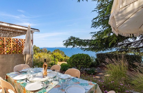 Residence "Les Floralies II" is a two-story vacation rental in Le Lavandou, France. It offers a private yard, internet Wi-Fi, and parking facilities. Located in the district of Saint Clair, the property is conveniently situated 1.5 km from the town center, 500 m from the sea, and 500 m from the beach. While a road needs to be crossed, it enjoys a south-facing position with a very steep 50 m long motor access leading to the house.