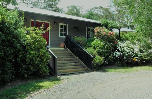 Set in a private 5 acre corner of Sylvan Glen Estate, The Cottage sits on a ridge between the golf course and a neighbouring vineyard. The 320 sqm house sits surrounded by mature gardens and native Scribbly gum trees and has been thoughtfully designed to provide a high quality and memorable self contained stay.