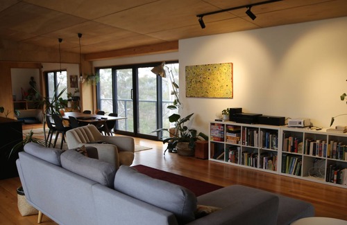 Cosy and clean, this home is full of natural light and plants, where you can choose to stare into the long views with a cup of something on the couch or explore the great library of books and games.