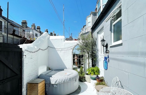 Ocean city studio, a modern cosy guest suite at the back of a Victorian house with a hot tub, private entrance through ally, kitchen, bathroom and comfortable sofa bed.