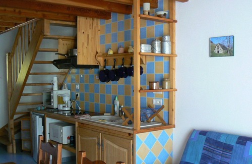 Ground floor: living room with kitchenette (sofa, fridge, ceramic hob, oven and microwave, extractor hood, electric coffee maker, table, sideboard for dishes, flat screen tv, vacuum cleaner, iron and ironing board. WC separated from the bathroom. Bathroom with shower and washing machine clothes. Floor with 2 bedrooms: 1 room with 1 bed for 2 people. 1 bedroom with 2 twin beds. 1 cot on request. Terrace to living room, wooden garden furniture. Local ski, bicycles, barbecue ... parking.