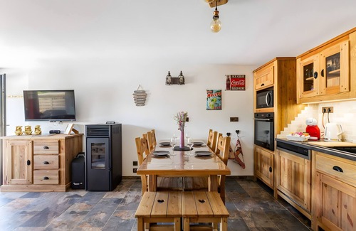Our gîte has two bright, comfortable and warm mountain-style bedrooms, and can accommodate up to five people. Enjoy our large living room, extending into a fully-equipped kitchen. Raclette, fondue, pierrade and crêpe-partie appliances are all available. In summer, sunbathe on the lawn or on the terrace, and enjoy convivial moments with family and friends.