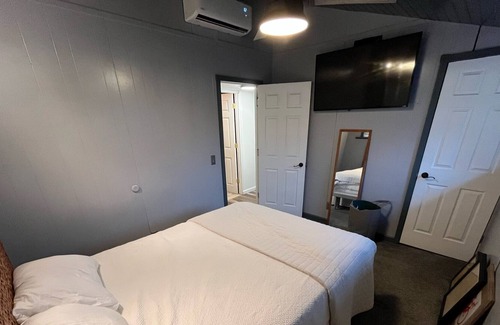 This cottage is perfect for a couple or small family looking to enjoy quality time in a lakeside setting year-round. In the summer enjoy kayaking (2 included in rental), paddle boarding (1 included in rental), fishing, swimming, and boating. There is a boat launch located on North Scott Lake and access to private dock just steps from the front of the cottage. This space offers two bedrooms and sleeps up to 5 comfortably. The Master Bedroom has a queen bed and the second bedroom is equipped with a bunk bed with a single on top and double on the bottom. Each bedroom has a television with streaming capabilities/ROKU. The open floor plan offers space to enjoy time together with lots of morning sunlight overlooking the canal and includes a stocked kitchen with stove/oven, microwave, full size refrigerator, small appliances such as toaster and coffeemaker, dishes, pots/pans and utensils. A large deck offers plenty of gathering space outdoors to enjoy the scenery or meal al fresco!