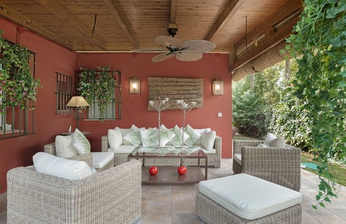 Located in El Puerto de Santa María, the cottage Villa Rocio has everything you need for a comfortable holiday. The 160 m² property consists of a living room, 5 bedrooms and 4 bathrooms and can therefore accommodate 10 people. Additional amenities include Wi-Fi, a TV, air conditioning, a fan as well as a washing machine. This vacation rental offers a private outdoor area, including a garden, open terrace, and covered terrace.