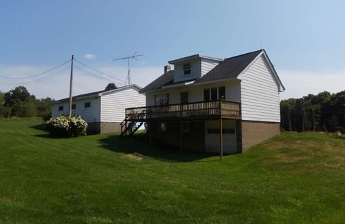 Welcome to our family cottage. We love this quiet house with the wide views out the windows. The front of the house faces south and receives ample sunshine. The back door opens onto a deck where we like to drink our morning coffee and watch for deer, turkey, and the occasional fox. On clear nights, the back deck turns into stargazing central.
