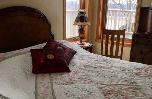 Visitors are welcome to enjoy a deck and patio that overlook Lake Winnebago, plus a shaded porch and patio that face Niagara Escarpment. Our three lovely bedrooms feature big windows and private space. The bedroom on the main floor has a queen bed and private bath. Two bedrooms on the lower level share a full bath; one bedroom has a queen bed and the other a single and double bed. Guests may also use our sunroom and great room. Our home has easy access to Hwy. 151 and I-41 near Fond du Lac, WI. The price of $375 applies to the rental of all three rooms/night. For guests wishing to rent one room, the price is $125 per night per room, plus taxes and fees. Owners will be on site and will offer an included breakfast each morning.