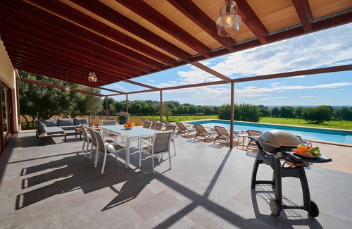 The country house Can Maimo with step-free access in Santanyí is the perfect accommodation for a stress-free holiday with your loved ones. The 2-storey property consists of a living room, a kitchen, 4 bedrooms and 2 bathrooms as well as an additional toilet and can therefore accommodate 8 people. Additional amenities include high-speed Wi-Fi (suitable for video calls) with a dedicated workspace for home office, a TV, air conditioning, a washing machine as well as a dryer. A baby cot and a high chair are also available. There are security cameras and/or audio recording devices on the premises. This charming country house provides a private outdoor space complete with a pool, garden, open terrace, covered terrace, barbecue, and outdoor shower.