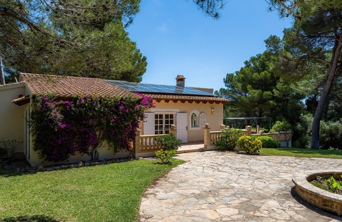 The country house Villa Ensueño in Illes Balears is the ideal accommodation for a relaxing holiday with a view of the Balearic Sea. The 2-storey property consists of a living room, a well-equipped kitchen, 5 bedrooms and 5 bathrooms and can therefore accommodate 6 people. Additional amenities include Wi-Fi, a TV, air conditioning, a fan, a washing machine as well as a dryer. A high chair is also available. This vacation rental offers an exclusive outdoor space with a pool, garden, open and covered terraces, barbecue, and outdoor shower.