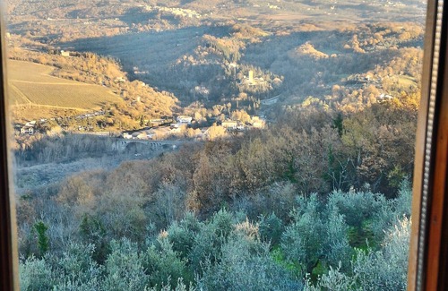 The house is in an open countryside, just on the top of a hill with beautiful panoramas on the Arno Valley.