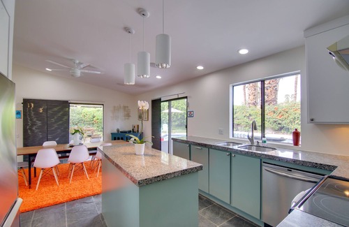 Perfect for a couples retreat, this Palm Springs home has everything needed for an unforgettable getaway including a pool, plenty of games, and a central location near golf courses and downtown attractions.