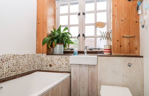 Amenities: Gas central heating? Oven, hob, microwave, fridge/freezer. TV and WiFi. Fuel and power inc. in rent. Bed linen and towels inc. in rent. Parking available. Rear patio with furniture and path leading down to beach. One well-behaved dog welcome. Sorry, no smoking. Shop 0.6 miles, pub 0.1 miles and beach 0.1 miles
