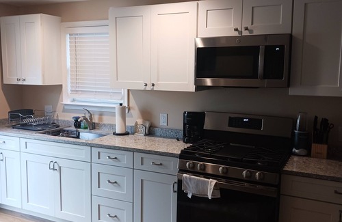 Cozy 2 bedroom cottage available for fall getaway. Newly Remodeled two bedroom and one full bathroom cottage. Open floor plan, nice size kitchen with seating for 4. Cozy living room, private yard with patio area and seating for entertainment and relaxing. This is great for 4 people to rent for whole summer (preferred) available May to October. Gas grill available for outside cooking. Walking distance to free beach and boardwalk, and many restaurants.