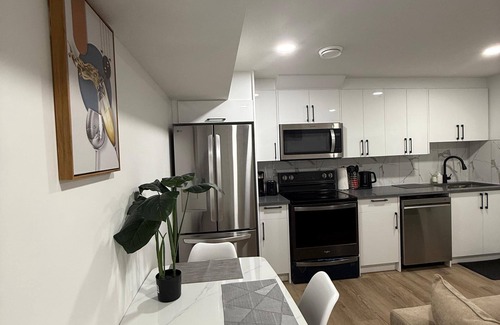 Welcome to our cozy 2-bedroom basement suite in Southwest Edmonton! Perfect for families, couples, or business travelers, the suite features two comfortable bedrooms, a full bathroom, and a well-equipped kitchen. Guests enjoy private entry, free street parking, and high-speed WiFi. Located in a safe, quiet neighborhood close to shopping, parks, and transit. A warm, convenient stay awaits you!