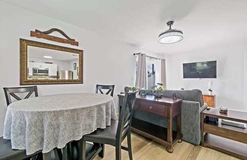 Features: 1 Queen bed + 1 Queen sofa bed (SUPER comfy) + 1 Queen air mattress, AC & ceiling fans, private backyard, washer/dryer, fully-stocked kitchen with brand new appliances, Keurig coffee maker & complimentary pods, air fryer, 2 parking spaces.