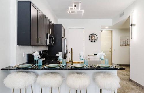 Welcome to Koosh Living, a 5-star luxury Airbnb. This elegant apartment offers a light-filled space with high-end furnishings. Enjoy a gourmet kitchen, a plush master suite with a luxurious bathroom, and stunning views from your private balcony. Exclusive amenities with a synagogue near by. Includes a free shuttle to the Dolce Hotel pool, a modern fitness center, and concierge service. Perfect for business or leisure, Koosh Living provides unmatched comfort and style for a memorable stay.