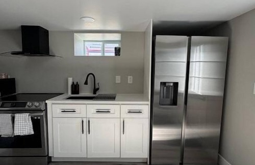 Enter your space through a side entrance, to your own private space, to a fully equipped kitchen with a full sized fridge, electric stove, full sized oven and microwave. With a quartz countertop and designated island/bar space to eat. Pots & pans, full dish set, basic toiletries, and cleaning supplies are provided. -Living room is complete with a 55inch 4K TV, with streaming services. High Speed Internet for WFH needs.