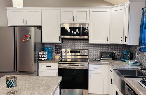 Relax with the whole family! Only 8 minutes away from the famous Kalahari resort. Our home has custom new kitchen with high vaulted ceilings, concrete countertops and center island. A beautiful skylight in the living room lets in an abundance of natural light throughout the entire day. It’s perfect for nature lovers. It is extremely quiet in the nights.There is a 3 mile Pocono bike/ hike trail adjacent to the property with direct access onto the trail . Township Registration #- 014718.
