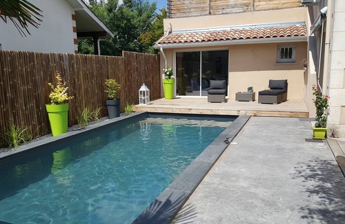 Cozy and warm house on the Basin is located in Lanton. Cozy and warm house on the Basin provides accommodation, featuring Internet, Pool, Private Pool, among other amenities. This House features Internet, Pool, Private Pool, to make your stay a comfortable one.