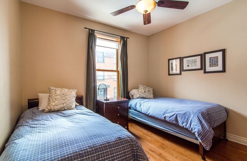 This two bedroom apartment has lots of natural light and sleeps 4. It is an open kitchen to the dining room, a living room, a master bedroom, a second bedroom and bathroom. It features one queen size bed and two single beds. The kitchen is full equipped with dishwasher. The bathroom has a deep tub with shower perfect to relax after days of sightseeing. Front loading washer/dryer are available in the apartment. You also have direct access to a very large deck (500 square feet) rarely shared with two complete set of chairs, tables and BBQs. The perfect place to enjoy the sun and have a feel of the neighborhood!