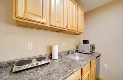 KITCHENETTE: Keurig coffee maker, toaster, mini fridge, hot plate, microwave, island w/ seating, dishware/flatware, trash bags/paper towels, cooking basics