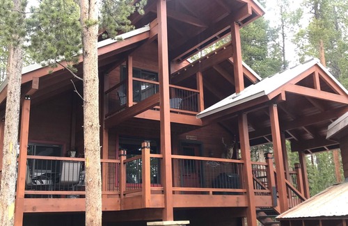 You will enjoy this gorgeous cabin in the woods. The entire cabin is the definition of warmth and function and features a large west facing deck for lovely sunrise views and afternoon BBQs. For a cozy evening, you will find a wood burning fireplace. And the bathrooms feature beautiful showers and one large freestanding soaking tub. The heart of downtown Breckenridge is 4 miles away (approximately 10 minute drive). As a bonus, moose are often seen at the cabin!
