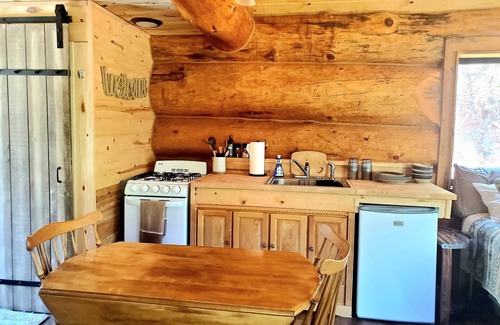 Updates: No more sofa sleeper...We now have a real bed! We also added a portable A/C unit to keep the temperature nice and cool in the summer, as well as window shades for extra privacy at night. You will also enjoy more seating on the expansive deck overlooking the Hilltop filled with Pine, Aspen and rock formations. Finally, we have wifi! So if you want to stay connected on social media, stream a show on our Roku TV, or just do some online shopping during your vacation, you can!