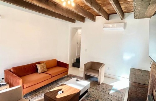 Enjoy all the Catskills has to offer in this cozy apartment perfectly located in Catskill village, a 10 min drive to trendy Hudson, boasting restored 1800s exposed brick walls and floors coupled with the convenience & comfort of modern amenities such as brand new appliances, W/D, rain shower and radiant bathroom floors as well as separate heat and a/c in every room. Decorative fireplace in living room and primary bedroom. Perfect for a family or friends’ getaway with 3BR that sleeps up to 6. Make a meal in the eat-in kitchen and relax with a coffee from the private balcony with mountain views.
