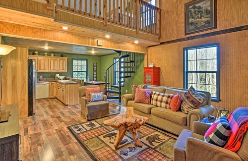 A serene retreat nestled in Nantahala National Forest, this Andrews log cabin offers a getaway in the Great Smoky Mountains! The vacation rental's cozy interior boasts 2 bedrooms, a loft, and 2 baths with space for 8. Spend time outdoors gathered around the fire pit while listening to the babbling of nearby creeks, hiking along trails or sipping coffee on the porch. Head out to enjoy local breweries, shopping, or guided whitewater rafting adventures, all minutes away from your secluded retreat!