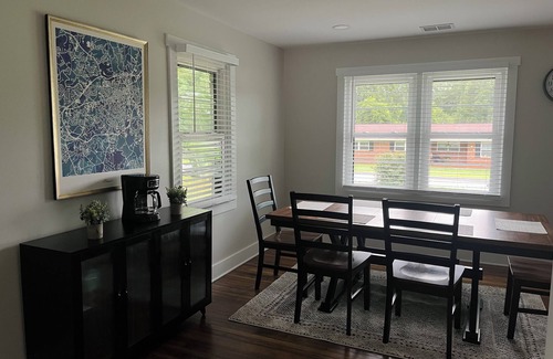 Freshly renovated and full of charm, this contemporary brick home is just a few minutes from the University of Georgia and downtown Athens. 2.2 mi to Sanford Stadium, 2.4 to downtown Athens, and 2.8 mi. to Athens Ben Epps Airport. The Firefly Trail is less than a mile away. You can bring your bicycles or walk the trail if you choose. We have 2 Smart TVs that have many viewing options included. There is a queen bed in each of two of the bedrooms and the third bedroom has 2 Twin beds. Each bedroom has new mattresses and decor. The spacious kitchen has everything you need to cook a meal or enjoy takeout. There is a Keurig and a full size coffee pot.